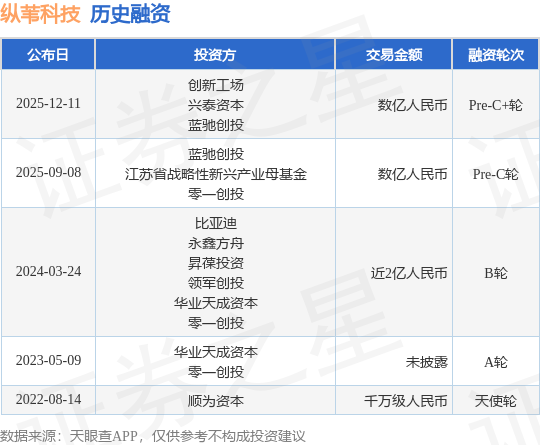 证券之星消息,根据天眼查APP于12月11日公布的信息整理,苏州纵苇科技有限公司Pre-C+轮融资,融资额数亿人民币,参与投资的机构包括创新工场,兴泰资本,蓝驰创投。
