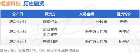 证券之星消息,根据天眼查APP于12月11日公布的信息整理,枢途科技(深圳)有限公司天使+融资,融资额未披露,参与投资的机构包括辰韬资本。