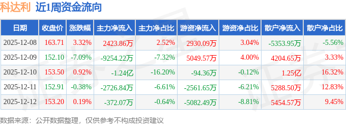 沪深股通持股方面,截止2025年12月12日收盘,科达利深股通持股数为503.17万股,占流通股比为261.0%。