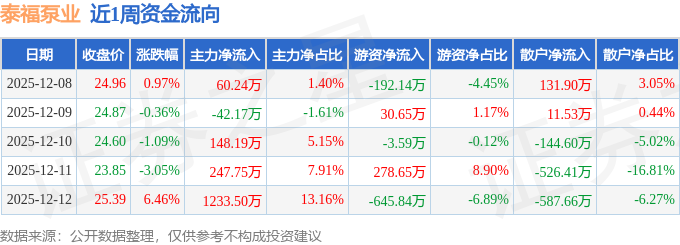 资金流向数据方面,本周泰福泵业主力资金合计净流入1647.5万元,游资资金合计净流出532.26万元,散户资金合计净流出1115.24万元。本周资金流向一览见下表: