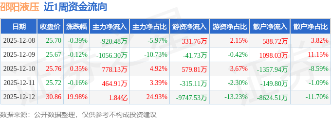 资金流向数据方面,本周邵阳液压主力资金合计净流入1.76亿元,游资资金合计净流出9192.8万元,散户资金合计净流出8445.51万元。本周资金流向一览见下表: