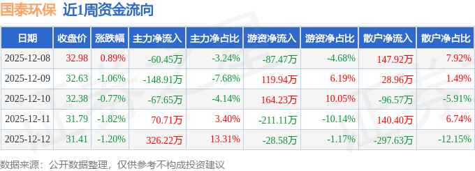 资金流向数据方面,本周国泰环保主力资金合计净流入119.91万元,游资资金合计净流出42.99万元,散户资金合计净流出76.92万元。本周资金流向一览见下表: