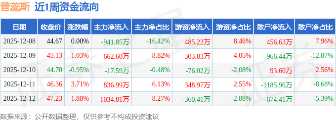 资金流向数据方面,本周普蕊斯主力资金合计净流入1574.97万元,游资资金合计净流入701.6万元,散户资金合计净流出2276.56万元。本周资金流向一览见下表:
