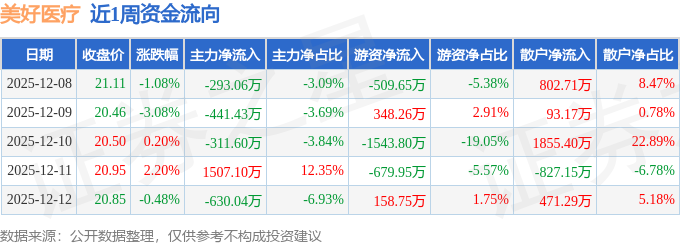 资金流向数据方面,本周美好医疗主力资金合计净流出169.03万元,游资资金合计净流出2226.38万元,散户资金合计净流入2395.41万元。本周资金流向一览见下表: