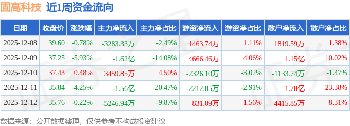 资金流向数据方面,本周固高科技主力资金合计净流出3.68亿元,游资资金合计净流入2422.33万元,散户资金合计净流入3.44亿元。本周资金流向一览见下表: