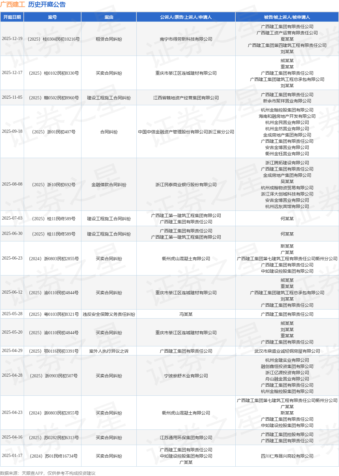 证券之星消息,根据天眼查APP显示,近日公布了一则广西建工集团有限责任公司作为被告/被上诉人的开庭公告,详细内容如下: