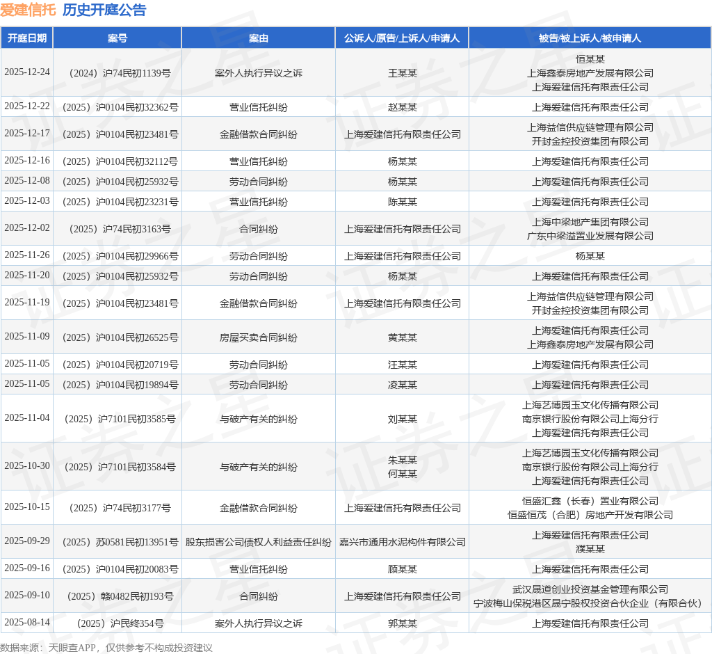 证券之星消息,根据天眼查APP显示,近日公布了一则上海爱建信托有限责任公司作为原告/上诉人的开庭公告,详细内容如下: