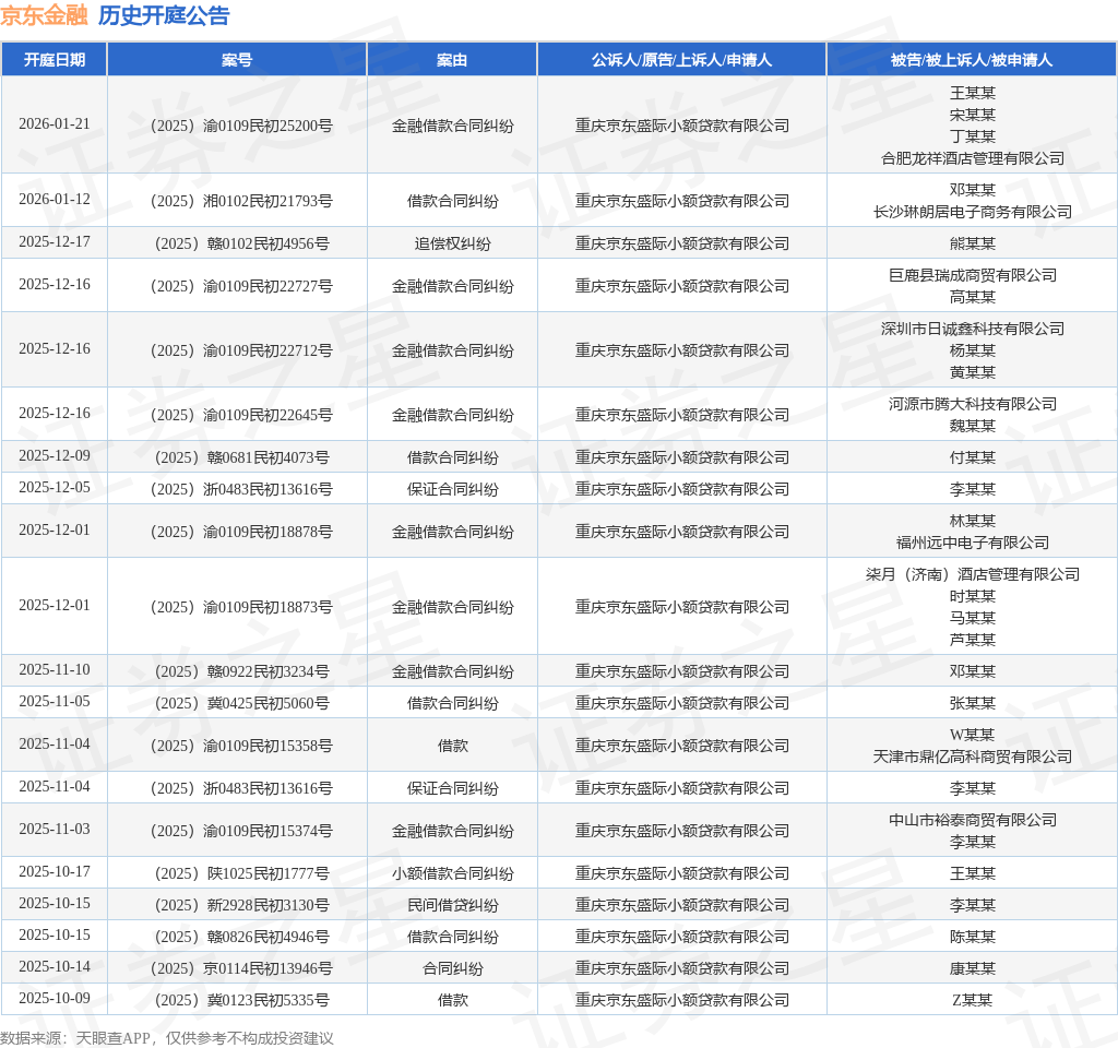 证券之星消息,根据天眼查APP显示,近日公布了一则重庆京东盛际小额贷款有限公司作为原告/上诉人的开庭公告,详细内容如下:
