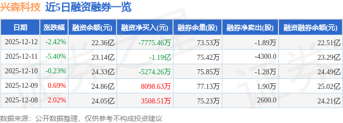 证券之星消息,截至2025年12月12日收盘,兴森科技(002436)报收于20.17元,下跌2.42%,换手率6.43%,成交量97.1万手,成交额19.41亿元。