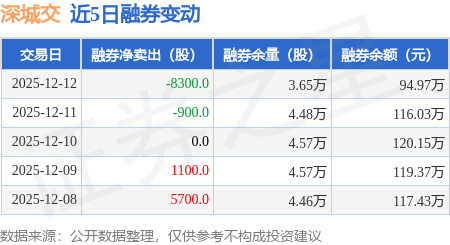 证券之星消息,12月12日,深城交(301091)融资买入1492.31万元,融资偿还1824.08万元,融资净卖出331.77万元,融资余额4.54亿元。