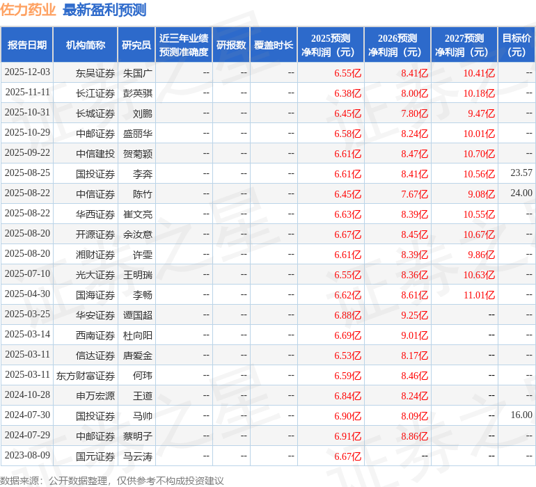 最新盈利预测明细如下: