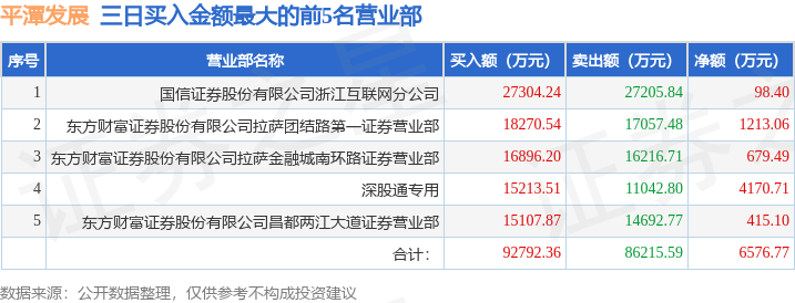 证券之星消息,沪深交易所2025年12月15日公布的交易公开信息显示,平潭发展(000592)因连续三个交易日内,涨幅偏离值累计达到20%的证券登上龙虎榜。此次是近5个交易日内第1次上榜。