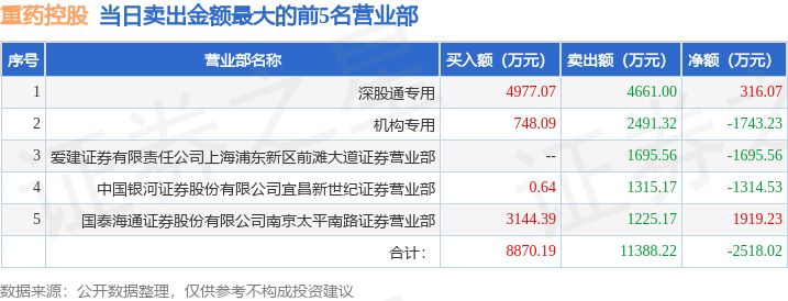 从龙虎榜公布的当日买卖数据来看,机构合计净卖出1743.23万元,北向资金合计净买入316.07万元。章盟主、作手新一、瑞鹤仙等知名游资榜上有名。(知名游资章盟主一般指国泰海通证券股份有限公司上海长宁区江苏路证券营业部席位、知名游资作手新一一般指国泰海通证券股份有限公司南京太平南路证券营业部席位、知名游资瑞鹤仙一般指中国银河证券股份有限公司宜昌新世纪证券营业部席位、知名游资作手新一一般指国泰海通证券股份有限公司南京太平南路证券营业部席位,根据市场资料整理,仅供参考)