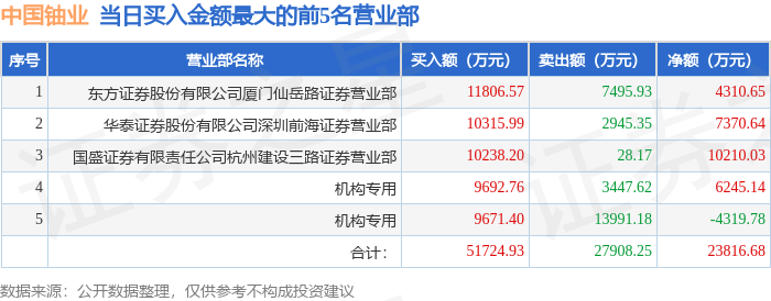 从龙虎榜公布的当日买卖数据来看,机构合计净卖出1.15亿元。方新侠等知名游资榜上有名。(知名游资方新侠一般指中信证券股份有限公司西安朱雀大街证券营业部席位,根据市场资料整理,仅供参考)