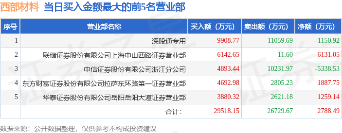 从龙虎榜公布的当日买卖数据来看,北向资金合计净卖出1150.92万元。章盟主、佛山系等知名游资榜上有名。(知名游资章盟主一般指国泰海通证券股份有限公司上海长宁区江苏路证券营业部席位、知名游资佛山系一般指光大证券股份有限公司佛山绿景路证券营业部席位,根据市场资料整理,仅供参考)