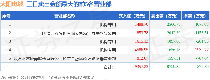 证券之星消息,沪深交易所2025年12月15日公布的交易公开信息显示,太阳电缆(002300)因连续三个交易日内,涨幅偏离值累计达到20%的证券登上龙虎榜。此次是近5个交易日内第2次上榜。