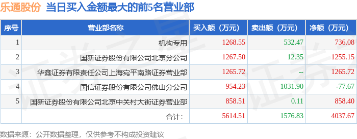 从龙虎榜公布的当日买卖数据来看,机构合计净买入736.08万元。炒股养家等知名游资榜上有名。(知名游资炒股养家一般指华鑫证券有限责任公司上海宛平南路证券营业部席位,根据市场资料整理,仅供参考)