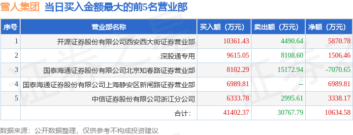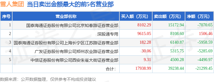 证券之星消息,沪深交易所2025年12月15日公布的交易公开信息显示,雪人集团(002639)因日涨幅偏离值达到7%的前5只证券登上龙虎榜。此次是近5个交易日内第3次上榜。