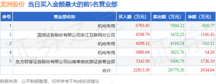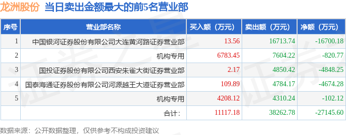 从龙虎榜公布的当日买卖数据来看,机构合计净卖出868.61万元。陈小群、朱雀大街、越王大道等知名游资榜上有名。(知名游资陈小群一般指中国银河证券股份有限公司大连黄河路证券营业部席位、知名游资朱雀大街一般指国投证券股份有限公司西安朱雀大街证券营业部席位、知名游资越王大道一般指国泰海通证券股份有限公司河源越王大道证券营业部席位,根据市场资料整理,仅供参考)