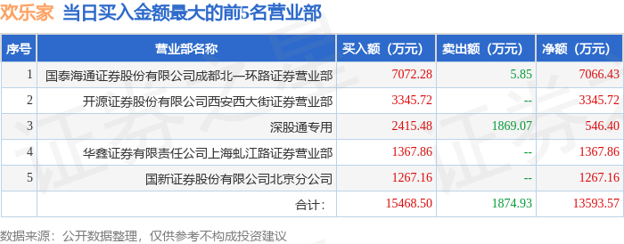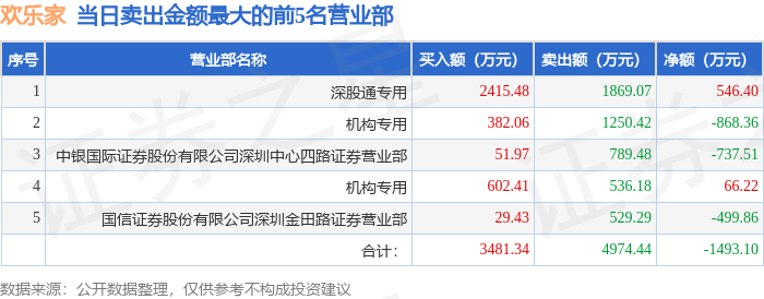 证券之星消息,沪深交易所2025年12月15日公布的交易公开信息显示,欢乐家(300997)因日涨幅达到15%的前5只证券登上龙虎榜。此次是近5个交易日内第1次上榜。
