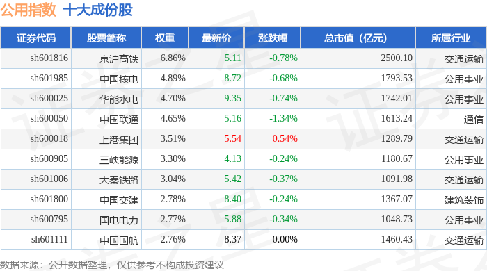 资金流向方面,公用指数(000007)成份股当日主力资金净流出合计8.11亿元,游资资金净流入合计1.95亿元,散户资金净流入合计6.16亿元。成份股资金流向详情见下表: