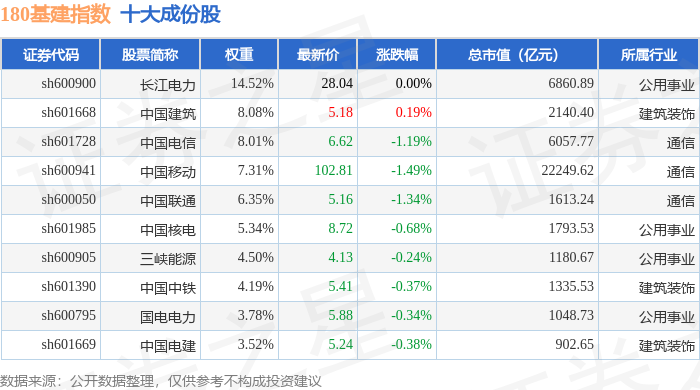 180基建(000025)指数十大成份股详情如下: