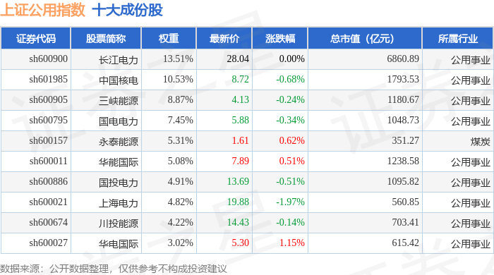 上证公用(000041)指数十大成份股详情如下: