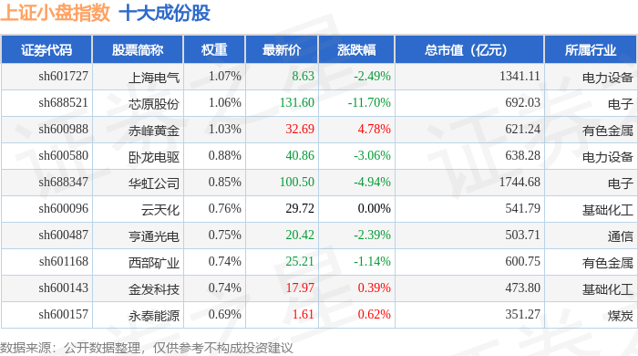 证券之星消息,12月15日,上证小盘(000045)指数报收于5522.01点,跌0.97%,成交1958.7亿元,换手率1.72%。当日该指数成份股中,上涨的有112家,固德威以12.36%的涨幅领涨,下跌的有197家,芯原股份以11.7%的跌幅领跌。