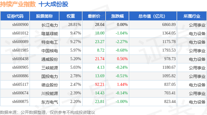 证券之星消息,12月15日,持续产业(000114)指数报收于1254.05点,跌0.37%,成交272.67亿元,换手率0.85%。当日该指数成份股中,上涨的有14家,固德威以12.36%的涨幅领涨,下跌的有22家,凤凰传媒以2.91%的跌幅领跌。