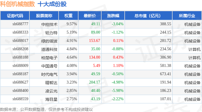 近10日内科创机械(000693)指数成份股做了调整,新纳入了2只股票,剔除了2只股票。