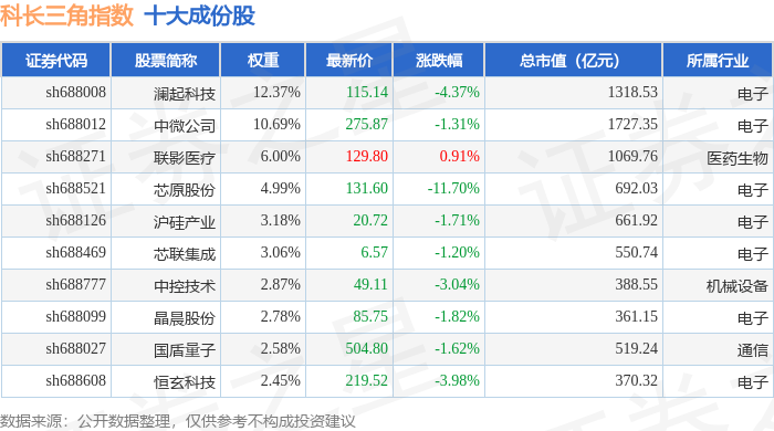 证券之星消息,12月15日,科长三角(000695)指数报收于965.41点,跌2.87%,成交398.05亿元,换手率1.77%。当日该指数成份股中,上涨的有13家,固德威以12.36%的涨幅领涨,下跌的有47家,芯原股份以11.7%的跌幅领跌。