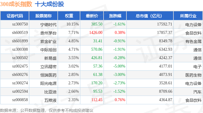 证券之星消息,12月15日,300成长(000918)指数报收于5018.97点,跌1.01%,成交2088.61亿元,换手率0.75%。当日该指数成份股中,上涨的有39家,深南电路以4.94%的涨幅领涨,下跌的有59家,立讯精密以5.0%的跌幅领跌。