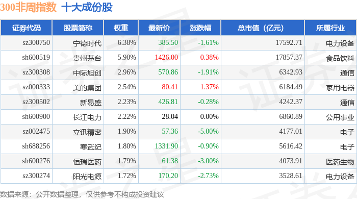 证券之星消息,12月15日,300非周(000969)指数报收于5275.63点,跌1.15%,成交3096.21亿元,换手率0.8%。当日该指数成份股中,上涨的有60家,东方盛虹以5.6%的涨幅领涨,下跌的有133家,东山精密以5.6%的跌幅领跌。