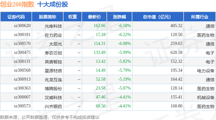 创业200(399019)指数十大成份股详情如下: