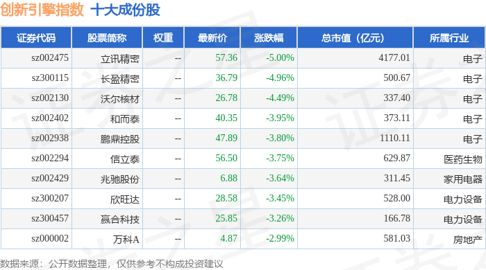 创新引擎(399050)指数十大成份股详情如下:
