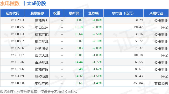 水电指数(399234)十大成份股详情如下: