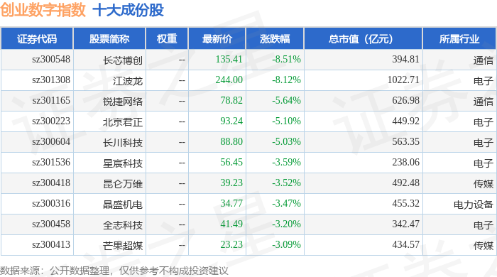 创业数字(399263)指数十大成份股详情如下: