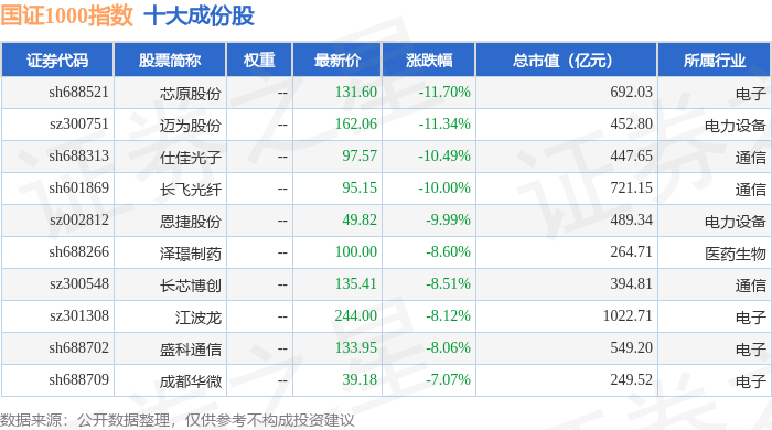 证券之星消息,12月15日,国证1000(399311)指数报收于4827.17点,跌0.75%,成交8372.64亿元,换手率0.85%。当日该指数成份股中,上涨的有379家,嘉友国际以10.04%的涨幅领涨,下跌的有590家,芯原股份以11.7%的跌幅领跌。