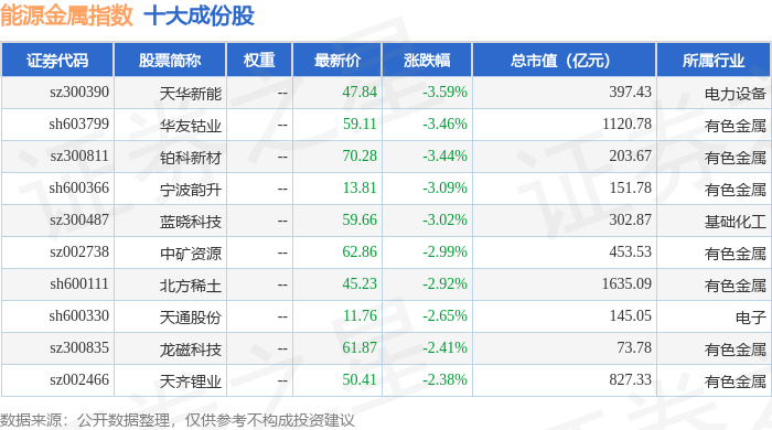 近10日内能源金属(399366)指数成份股做了调整,新纳入了3只股票,剔除了1只股票。