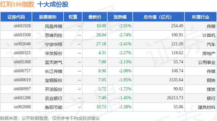 红利100(399411)指数十大成份股详情如下: