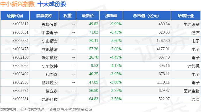 资金流向方面,中小新兴(399642)指数成份股当日主力资金净流出合计64.04亿元,游资资金净流入合计8.97亿元,散户资金净流入合计55.07亿元。成份股资金流向详情见下表:
