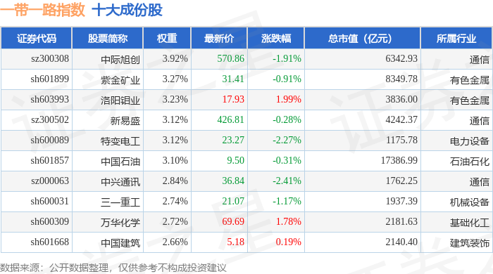 证券之星消息,12月15日,一带一路(399991)指数报收于2865.35点,跌0.45%,成交1314.54亿元,换手率0.74%。当日该指数成份股中,上涨的有35家,菲利华以8.52%的涨幅领涨,下跌的有54家,锐捷网络以5.64%的跌幅领跌。