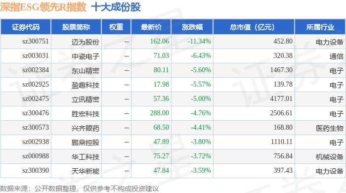 深指ESG领先R(470029)指数十大成份股详情如下: