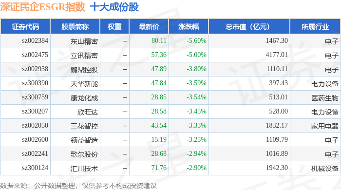 深证民企ESGR(470056)指数十大成份股详情如下: