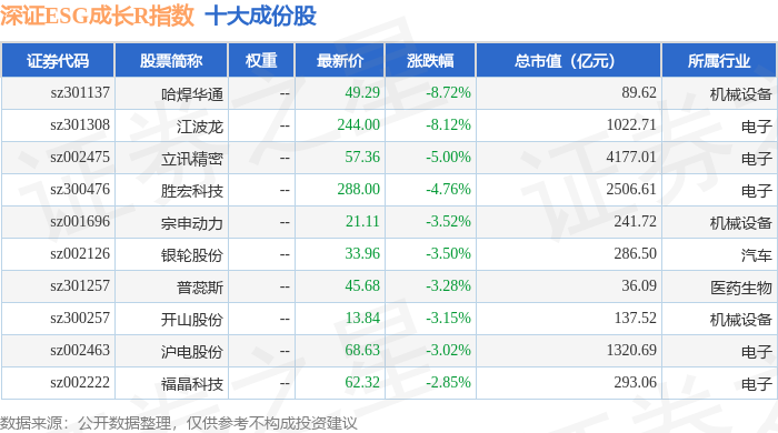 深证ESG成长R(470060)指数十大成份股详情如下: