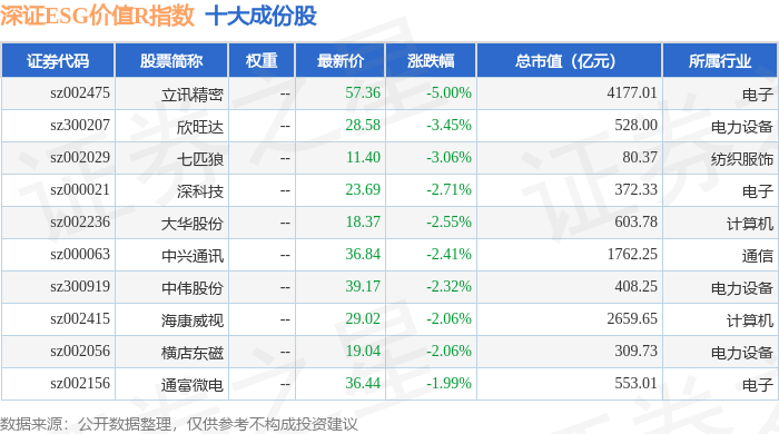 深证ESG价值R(470061)指数十大成份股详情如下: