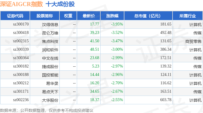 资金流向方面,深证AIGCR(470075)指数成份股当日主力资金净流出合计17.01亿元,游资资金净流入合计4.77亿元,散户资金净流入合计12.24亿元。成份股资金流向详情见下表: