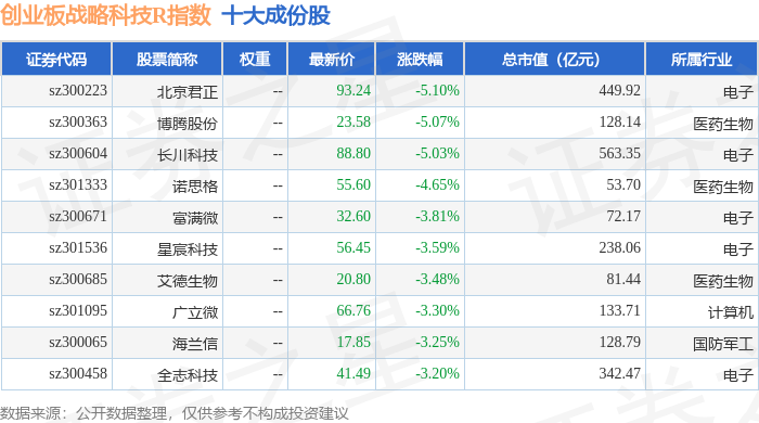 创业板战略科技R(471004)指数十大成份股详情如下: