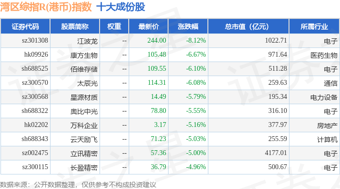 湾区综指R(港币)(480004)指数十大成份股详情如下: