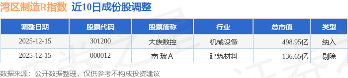 近10日内湾区制造R(480009)指数成份股做了调整,新纳入了1只股票,剔除了1只股票。